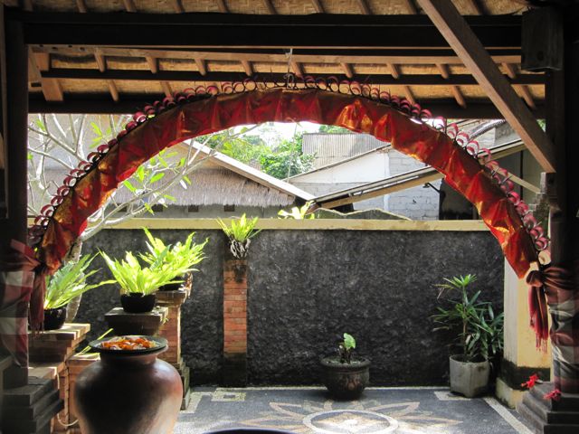 We found our way to Puri Asri, the hotel we would be staying. Located in a quiet neighborhood (looks nothing like any neighborhood in America) amid the rice patties, Puri Asri welcomed us with watermelon welcome drinks. The open-air reception/dining room is beautiful to behold. It turns out some of the staff (and their families) are talented wood carvers. We met an Alaskan businessman, Walter, who deals in hand-carved wood furniture, and ships from Puri Asri. We were there one day watching 48 large boxes being transported by petite Indonesian men (always with huge smiles). In all the years Walter has worked with the Balinese, he says they have conducted blessing ceremonies for each shipment, and to this date all shipments arrive safely and timely without issue.